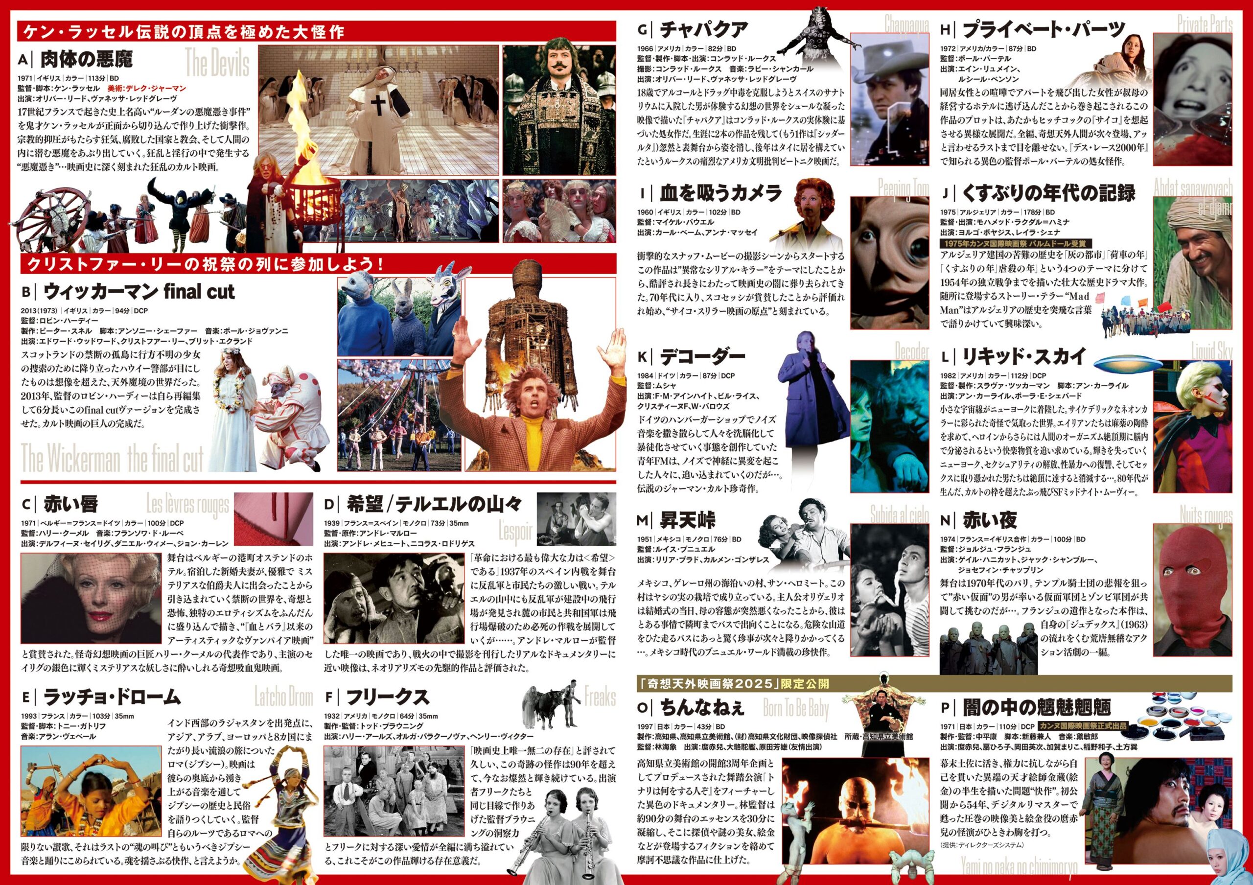 「奇想天外映画祭2025」開催!初登場の衝撃作『肉体の悪魔』をはじめ、『ウィッカーマン』『フリークス』『昇天峠』『血を吸うカメラ』など、超カルト傑作が怒涛の上映!