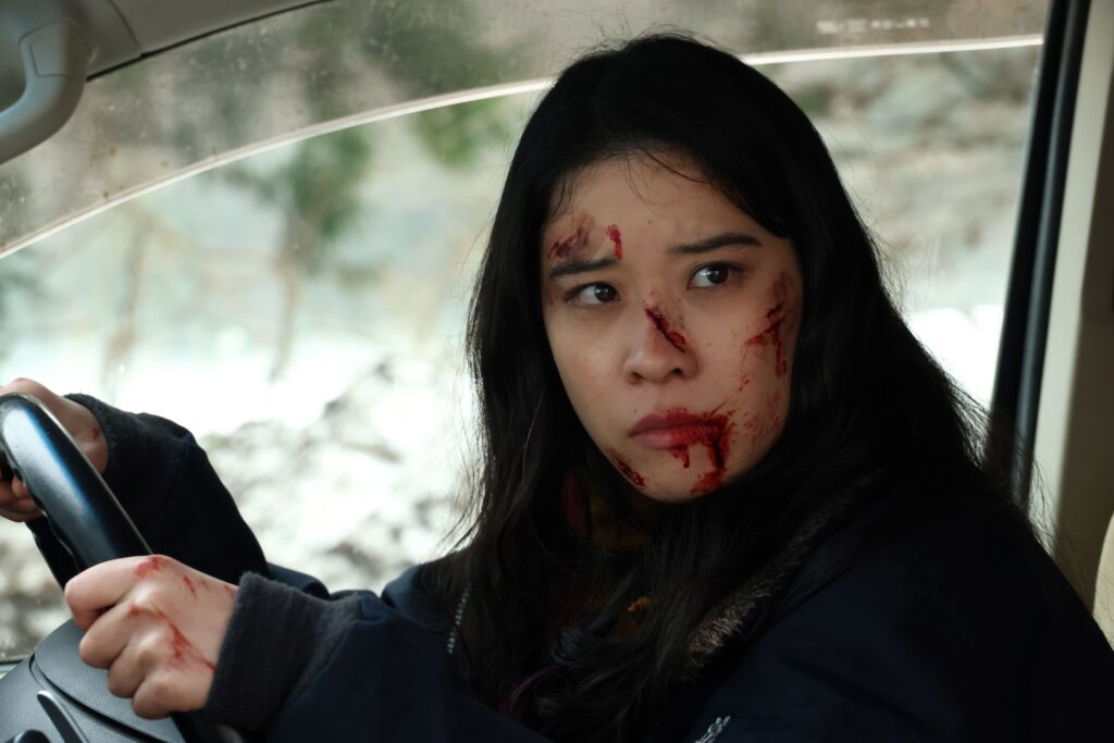 今回解禁された場面写真には、泥だらけで負傷した耳に包帯を巻いている小山内(鈴木福)が左足をガムテープで固定しながらも果敢に前へ進もうとする若林(円井わん)を支えて歩く姿や、猟師の神崎(宇梶剛士)と若林が固い握手をするシーンも。そのほか横転した軽トラックの上で吠えるヒグマや眼光鋭い闇バイトたちの表情など、物語への期待が高まるカットが並ぶ。
