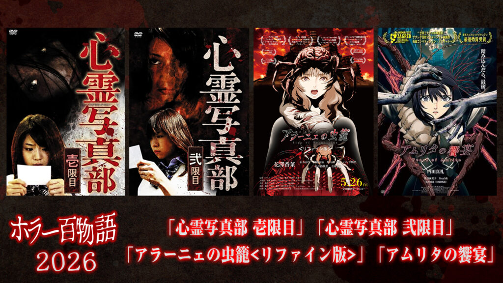 放送ラインナップは、『心霊写真部 壱限目』『心霊写真部 弐限目』のほかに、『心霊写真部』原作・脚本の福谷がプロデュースした、坂本サク監督の個人制作ホラーアニメ映画『アラーニェの虫籠<リファイン版>』(完全無料放送/花澤香菜CV)、『アムリタの饗宴』(ニコ生初放送/内田真礼CV)。
